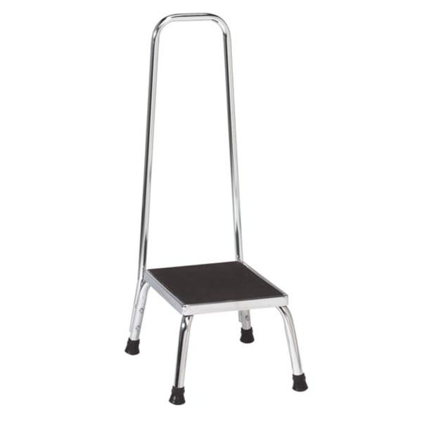 Stool, 14¼"L x 9"H x 11¼"W, Handrail, Chrome Plated, Steel Leg, Rubber Tips, Non-Skid Rubber Tread