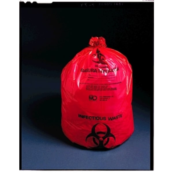 Infectious Waste Bag, 24" x 24", 1.2 mil, 12-16 gal, 150/rl/cs