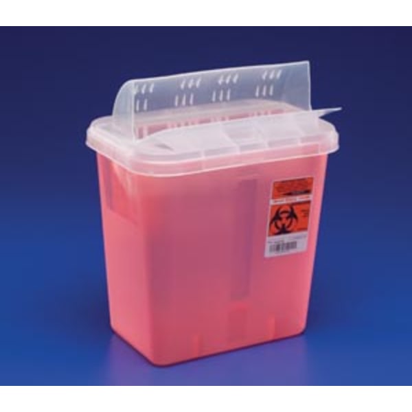 Sharps Container, Transparent Red, Mailbox-Style Lid, 2 Qt, 20/cs (Continental US Only)