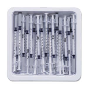 Allergist Tray, 1mL, Permanently Attached Needle, 27G x 3/8", Regular Bevel, 25/tray, 40 trays/cs (Continental US Only)