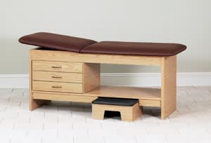 Laminate Treatment Table, 3 Drawers, Storage Shelf, Adjustable Backrest & Matching Stool, 72"L x 31"H x 30"W